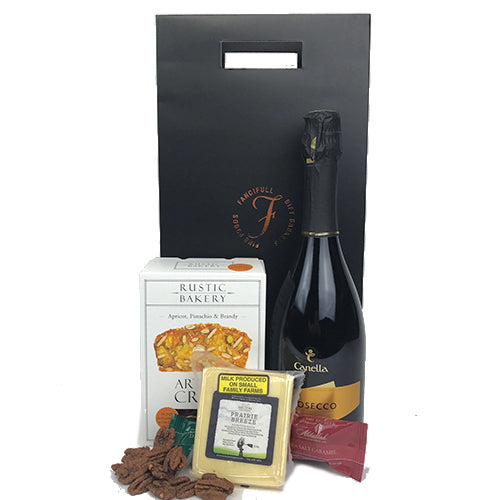 INSTRUCTIONS: Chill the Prosecco, pop the cork, put the goat cheese on the crostini, eat, drink, repeat!