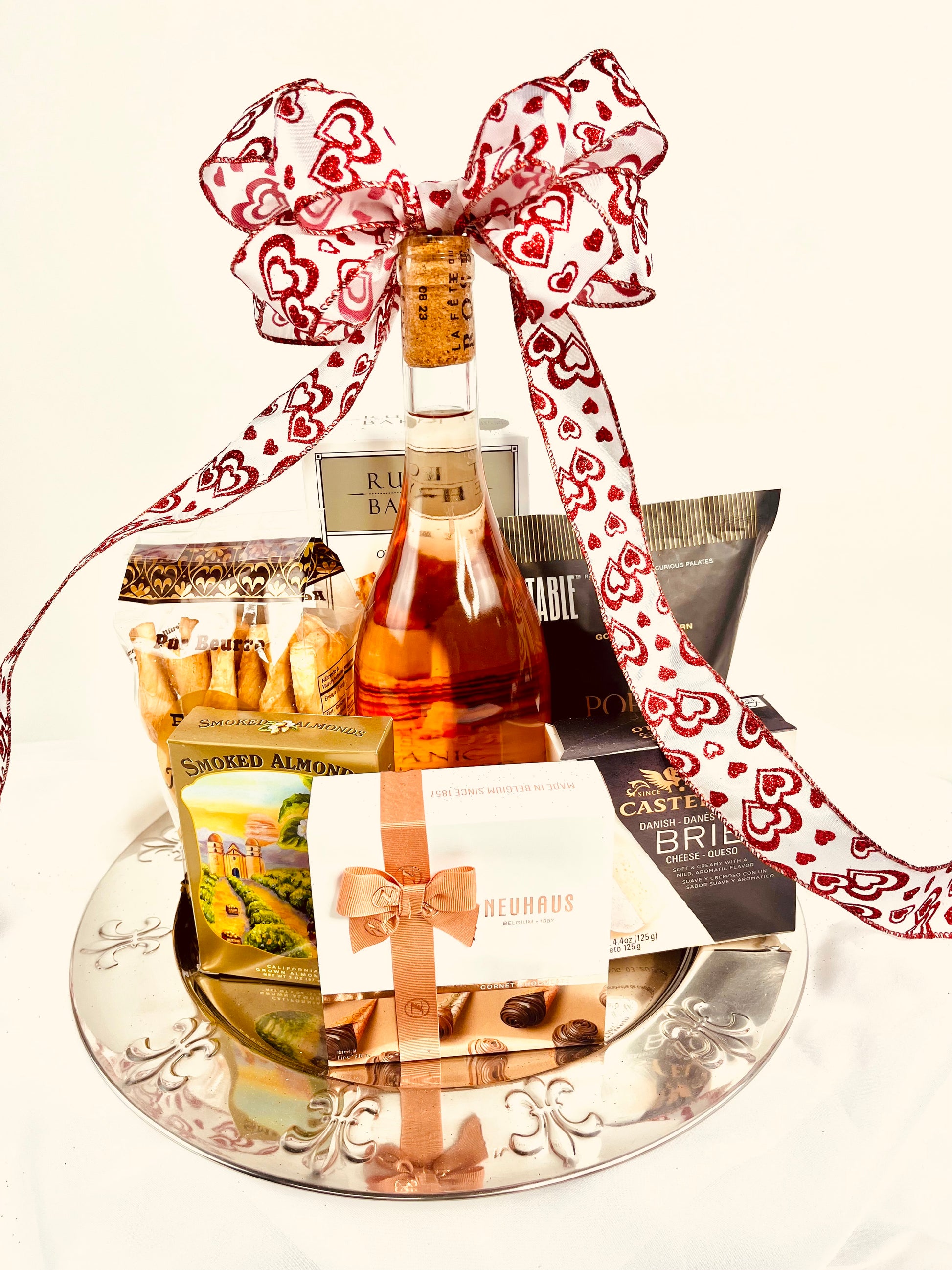 "Spread the love with Valentines and a Rose - a delicious rose wine perfect for any romantic occasion. Paired with gourmet chocolates and other tasty snacks, this gift will make your special someone feel extra loved. Share the sweetness and cheers to love!"